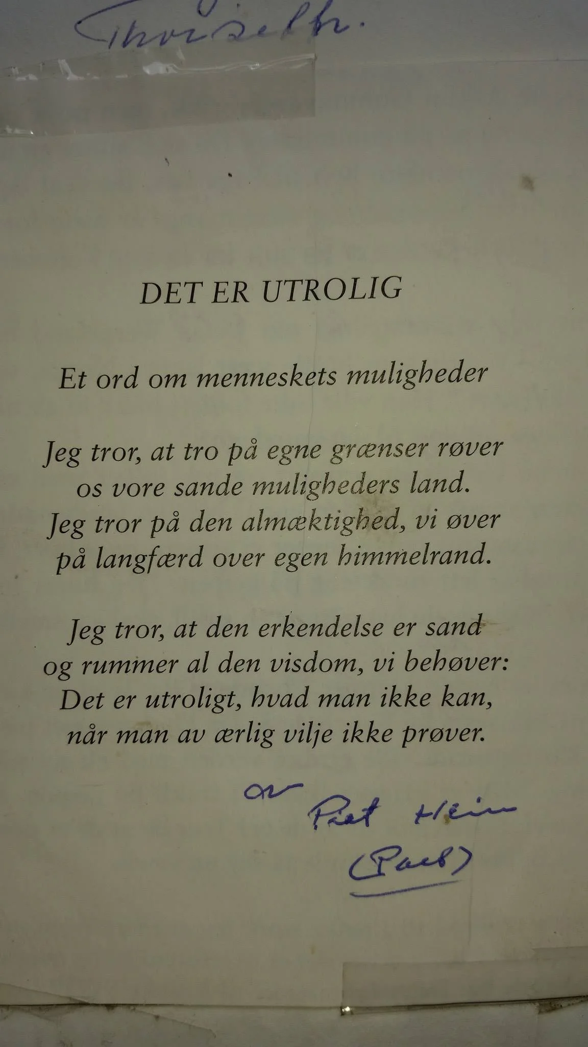 Det er Piet Hein sine ord som vi alle kan legge oss på hjartet og eg vil legge til ikkje alltid åleine -