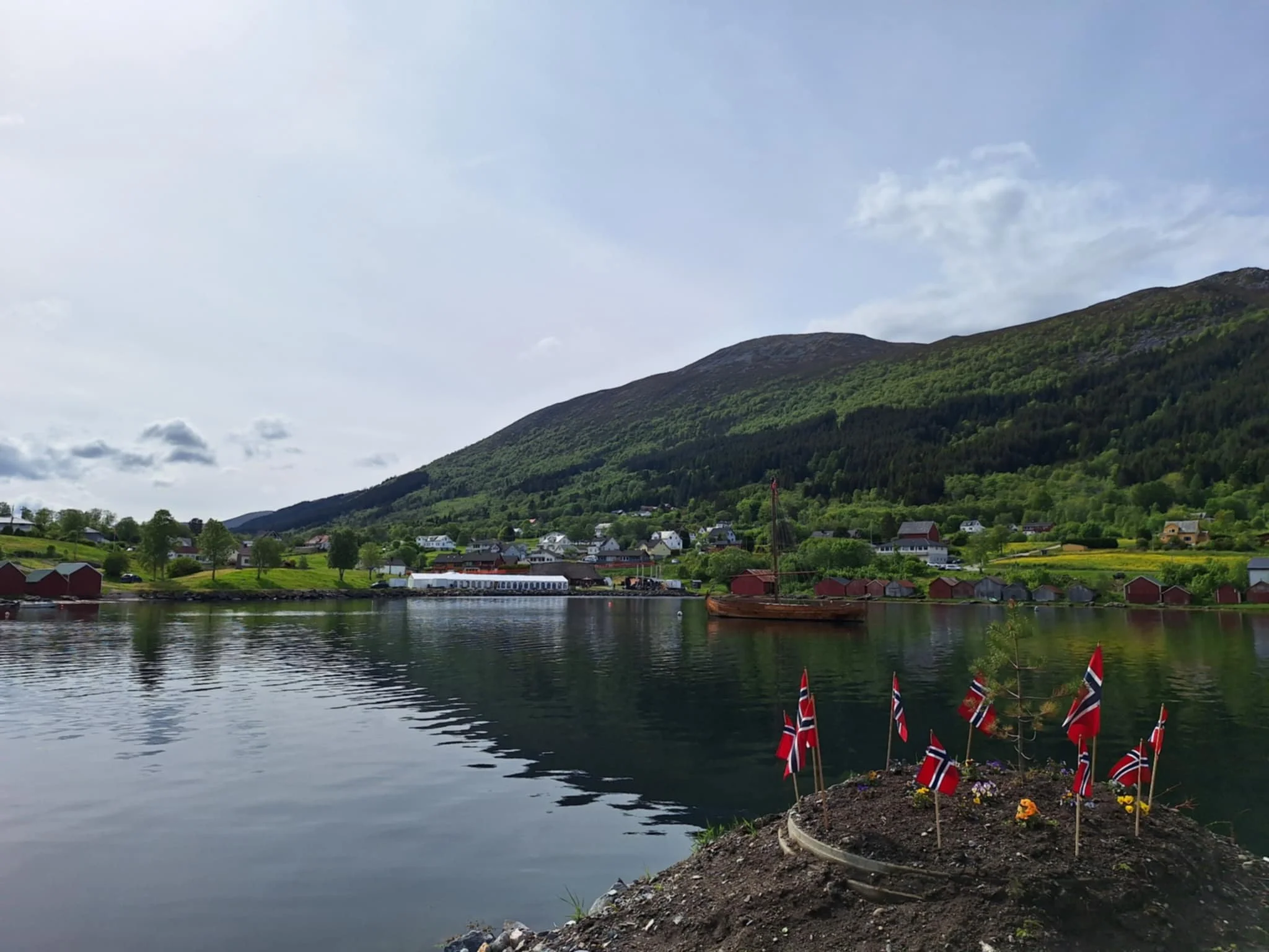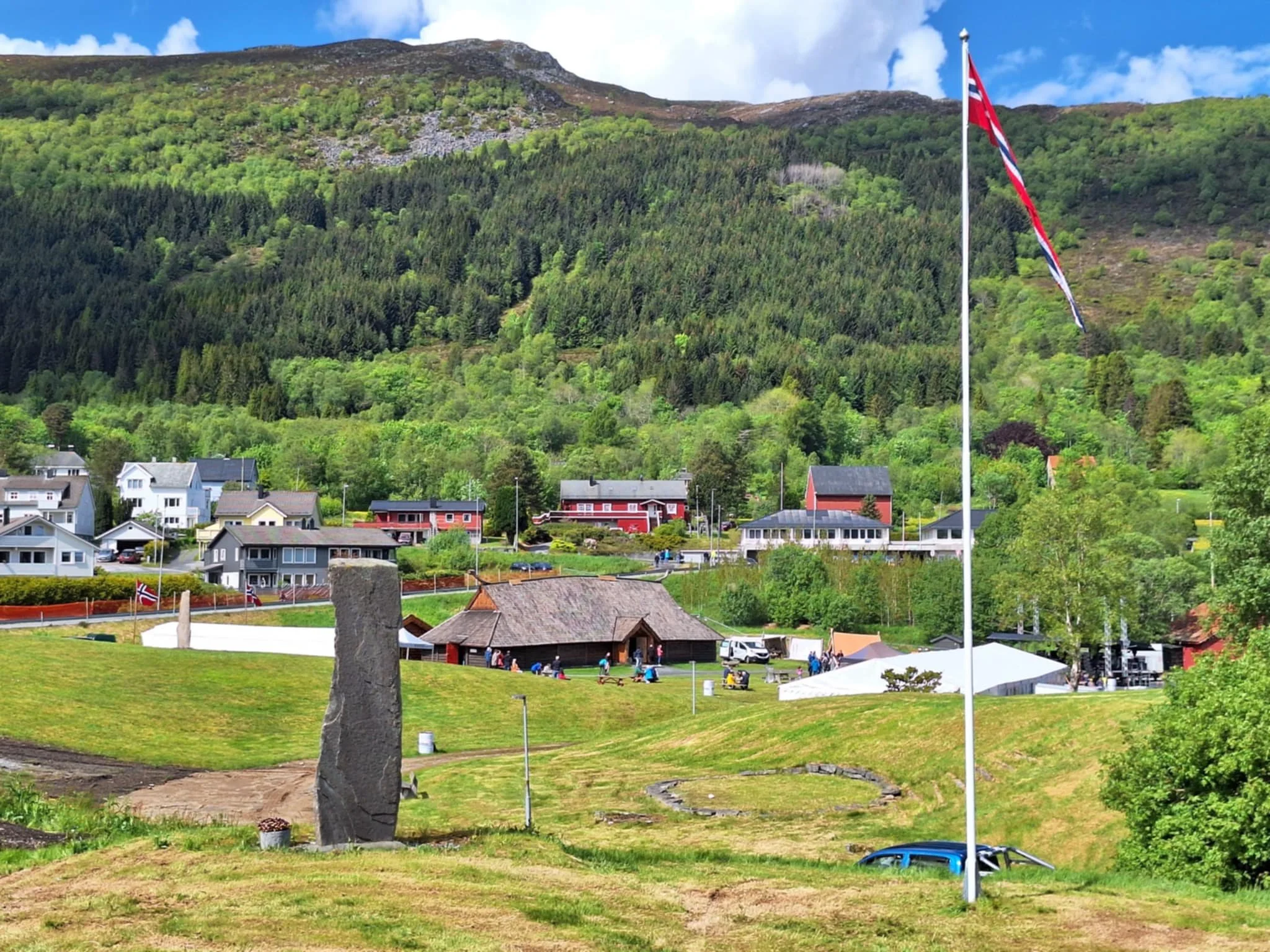 Etter kortreist biltur stogga vi ved det nybygde høvdinghuset Hodr Hjørungavåg høvdingsete. Der tok Kvitserkvenen og høvdinghusbyggar Gunnar oss imot. Han tok oss med rundt i dette eineståande og nyskapte tunet, om det ikkje var for min støtte- og gåhjelpar firhjuling og våre klede, så var vi 1000år attende i tid. Makelaust vert eit lågmælt uttrykk for den vi såg og opplevde ute og innomhus. Det må berre opplevast. Dette er dei realiserte draumane og gjerningane til ei gruppe “galningar” som med haud og hender på dugnad er skaparane av dette storverket. Det må opplevast. Gjøcosjef Rolf Gjøen var like imponert, men ikkje mållaus. Ta kontakt om der er noko vi kan bidra med for å ta vare på dette, sa han.