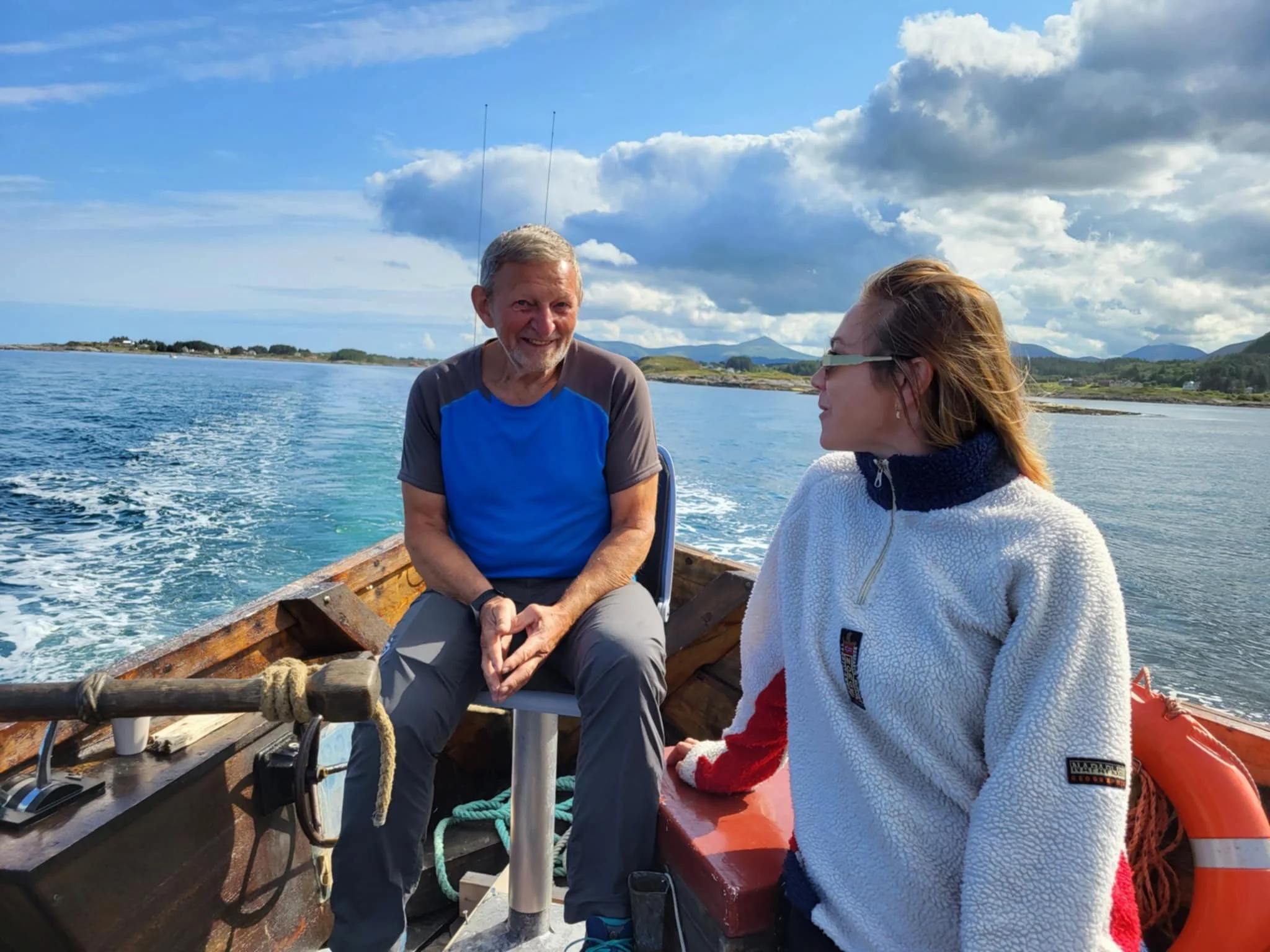 Det vart ein sanselaus fin tur både over Vika, Harøyfjorden, Lepsøyrevet og rundt Flø. Gunnar Warholm sat på den fora og svingbare førarstolen og heldt styreåra i stø kurs. Berre dei siste par timane til Tjørvågbukta og Håvika Marina tok eg over. Men eg hadde fødd Gunnar vel med prat om mine framtidsmål og draumar, kaffi og frukt i sukkerfri vaniljesaus. I Håvika vart vi møtt av Elin Moltubakk, ho er Gunnar sin sambuar og i tiårsvis min styreformann. Ho køyrde oss heim og kvar til sitt.